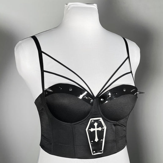 Coffin bustier with spiked PVC