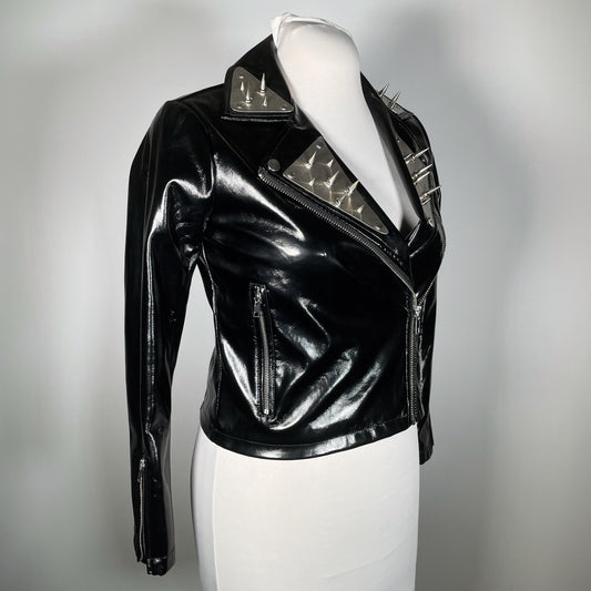 Vinyl PVC Moto Jacket w/ Metal Plating and Spikes
