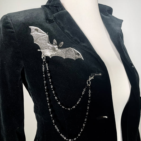 Black Velvet Vampire Blazer with Bat and Rosary Chains