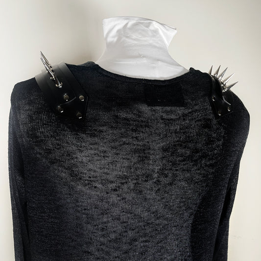 Black Sheer Cardigan Sweater with Rubber Spiked Harness