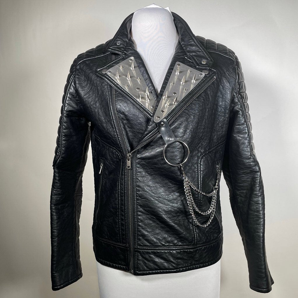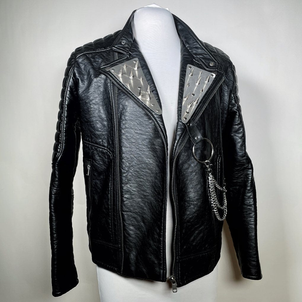 Men's Metal Plate with Spikes w/ Removable Chains Moto Jacket