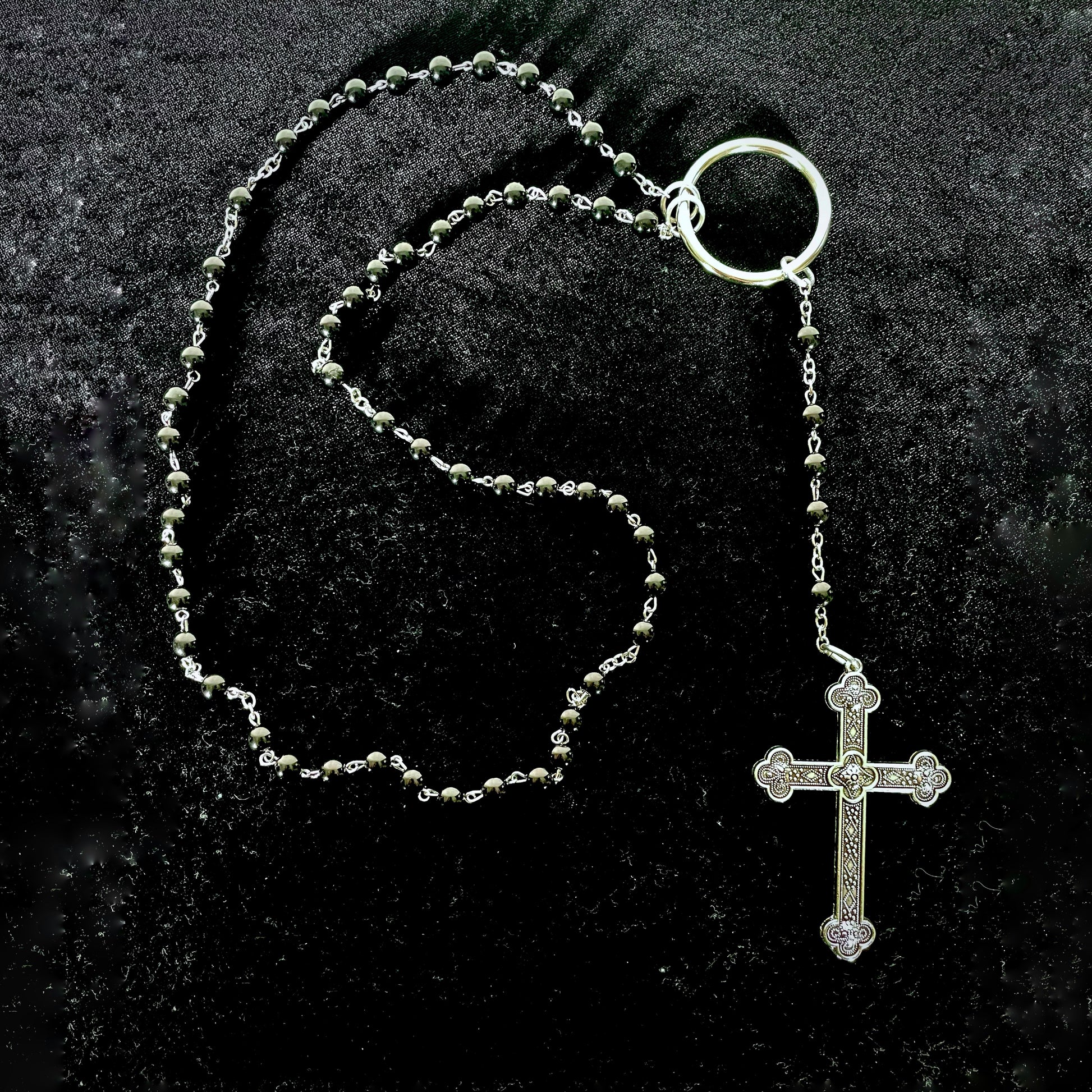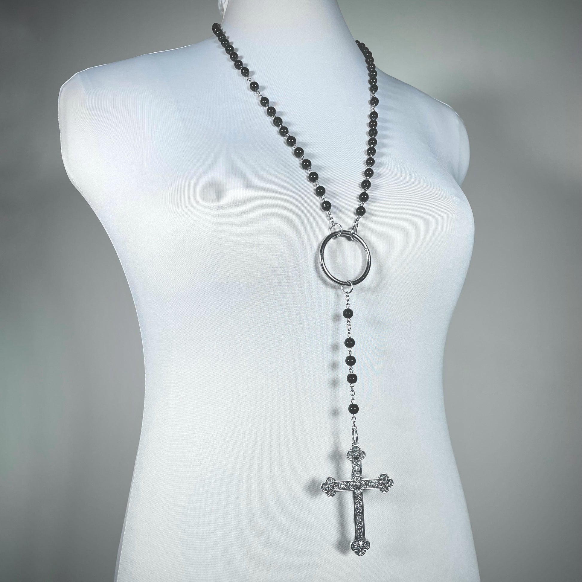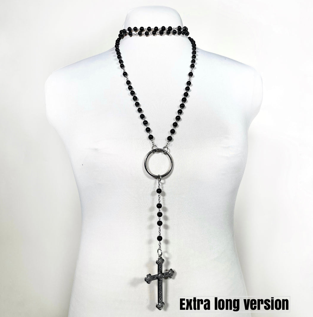 This gothic cross rosary necklace is the ideal necklace for your romantic trad goth, death rock, or 80's looks! You have your choice between lengths available below. Standard length is regular rosary length, and the extra long option gives you the option to wrap it around for choker/necklace effect! (It's so hard to find rosary's that are ACTUALLY extra long! )