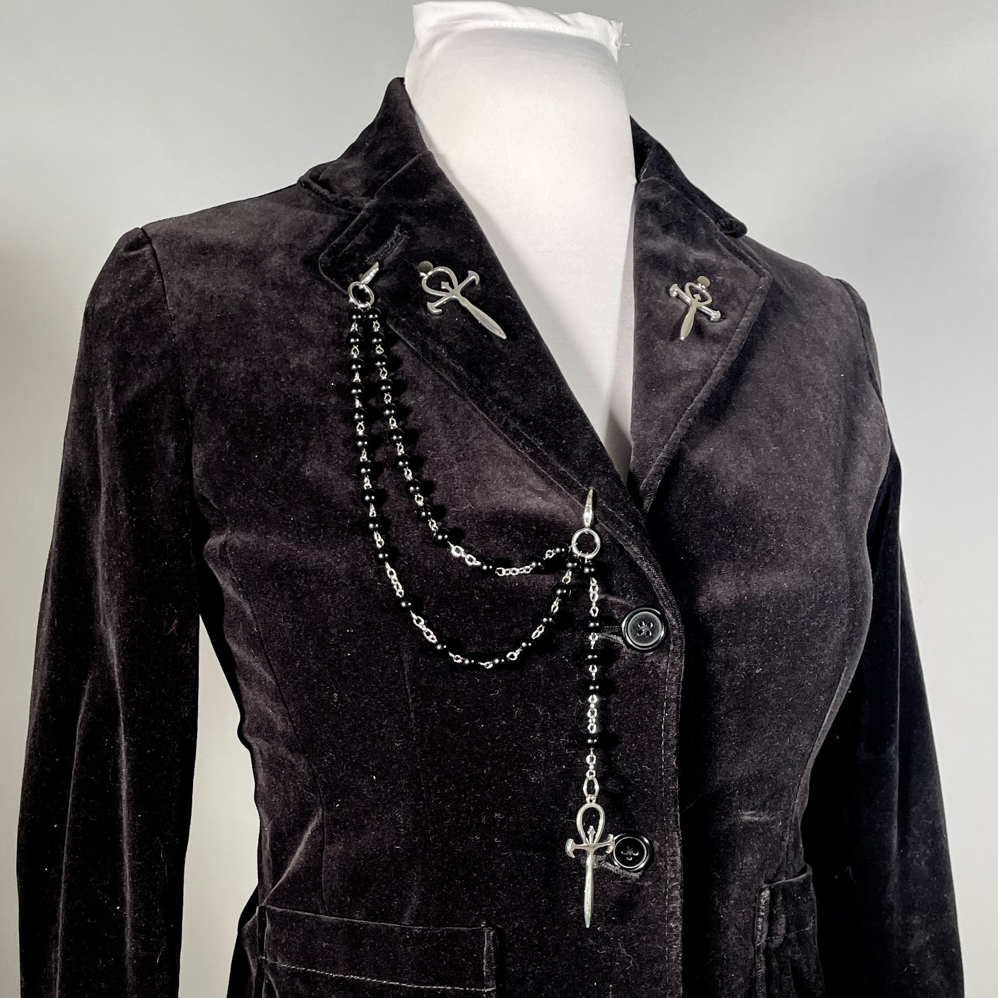 Black Velvet Goth Blazer w/ Rosary Chain and Vampire Ankhs