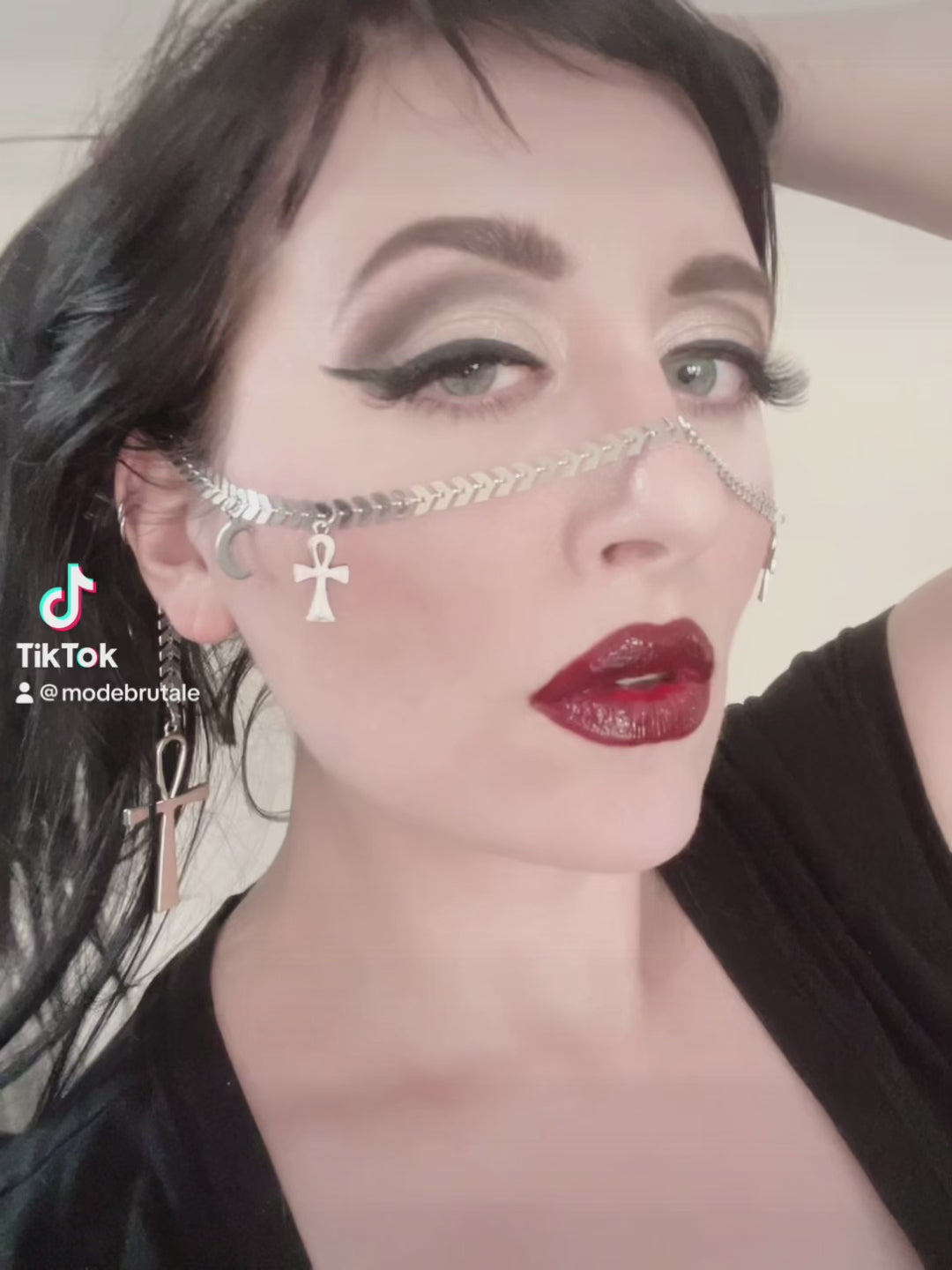 Ankhs and moons give this bright silver face chain it's witchy goth appeal. This face chain is super comfortable as the chain lays flat across your nose and is very secure. NO piercings are necessary! Just pull the chain across your nose, tuck behind your ears, and you are ready to go.