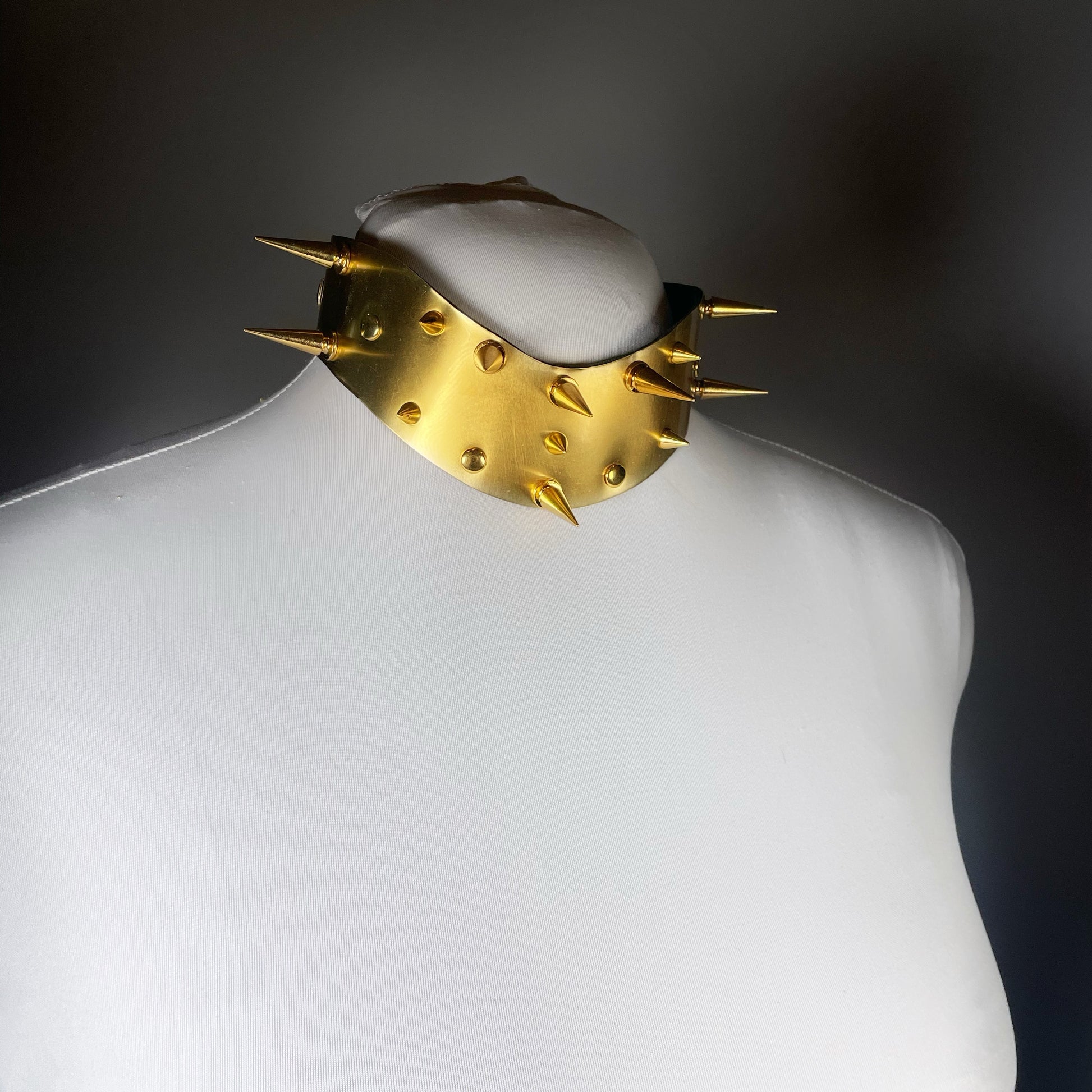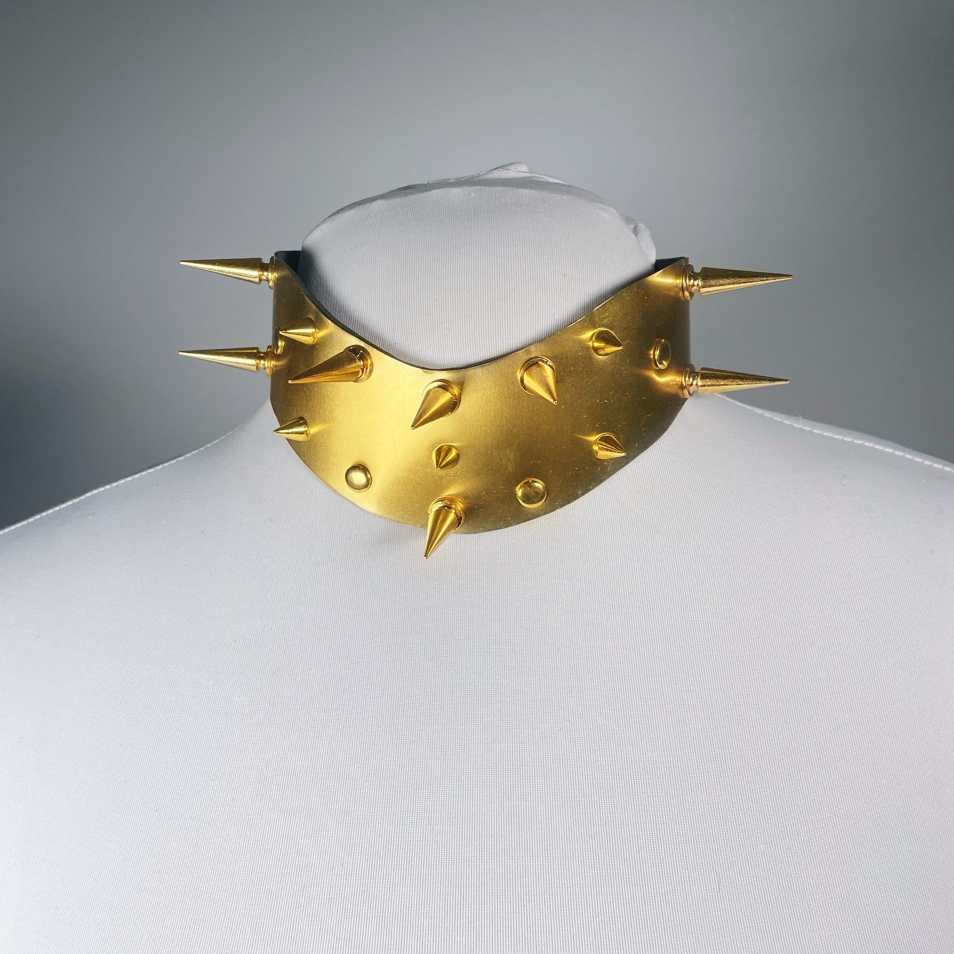 This metal neck collar is the perfect spiked collar for your collection! The metal spikes on metal base give this a different look than your traditional leather spiked collar, and the contoured cut and foam lining provide comfort and make this super flattering and easy to wear.