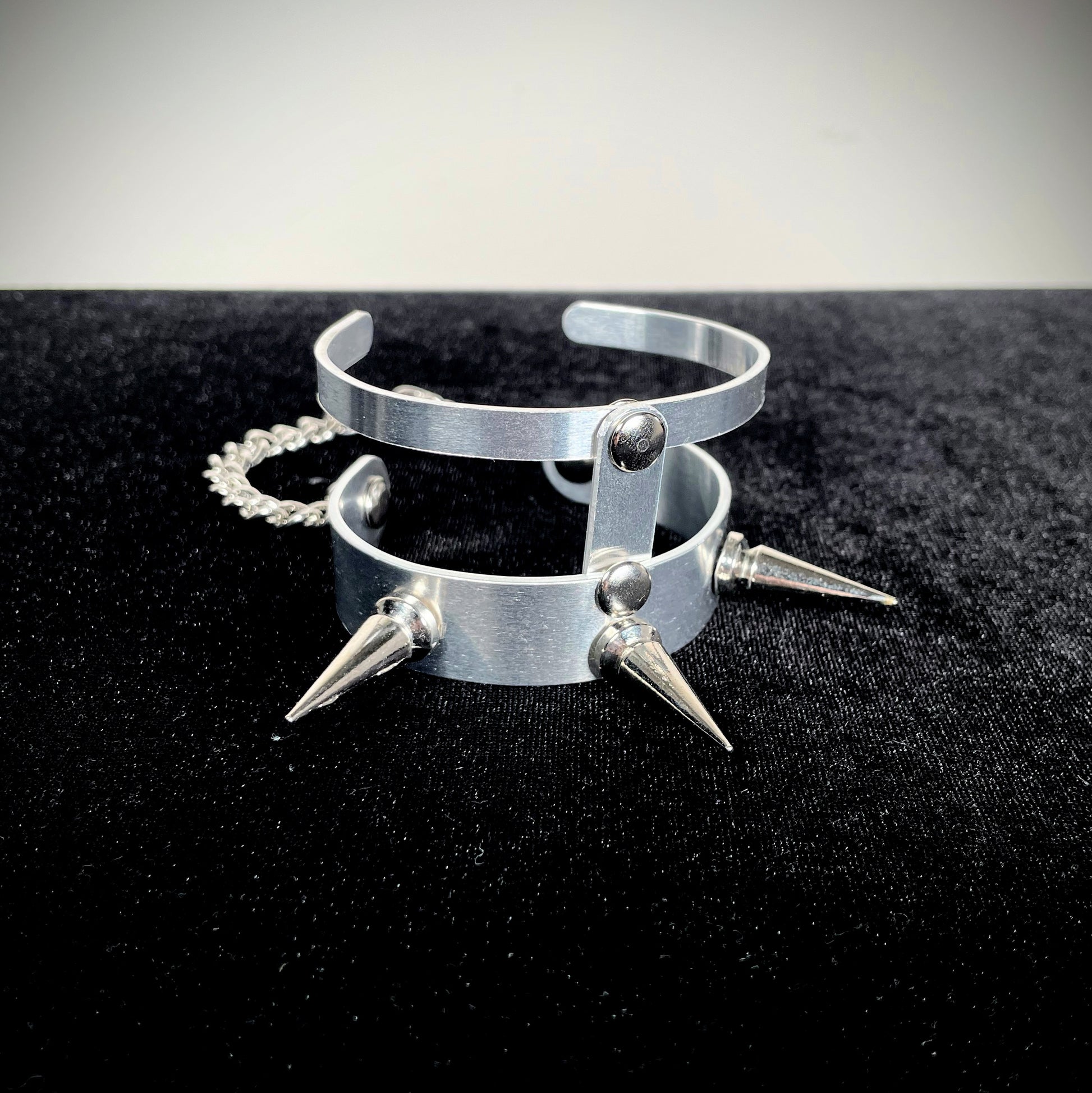 Aluminum spiked bendable cuff bracelet with chain